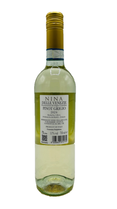 Nina Pinot Grigio Veneto IGT 2024 offers delicately structured aromas of fresh pears and almonds. Its subtle sweetness is balanced perfectly with a crisp, dry finish, creating an elegant and refined flavour profile that exemplifies the finest qualities of Veneto’s terroir. Ideal for those seeking a sophisticated white wine that pairs well with light dishes and occasions requiring finesse.