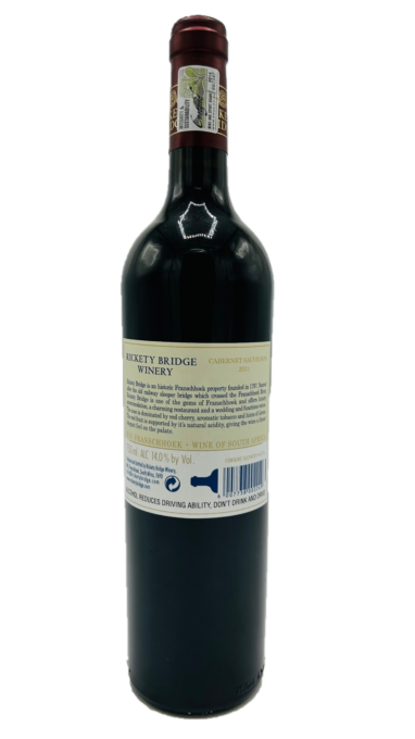 Rickety Bridge Cabernet Sauvignon 2021 offers classic black fruit and herbal notes, complemented by subtle oak spice. Aromas of blackcurrant and blackcurrant leaf meld with toasted tobacco, delivering a full-bodied, elegant wine. Silky tannins lead to a long, refined finish. Matured 12-15 months in primarily older French oak barrels, it pairs beautifully with smoked brisket or roasted lamb, showcasing depth and complexity for the discerning palate.